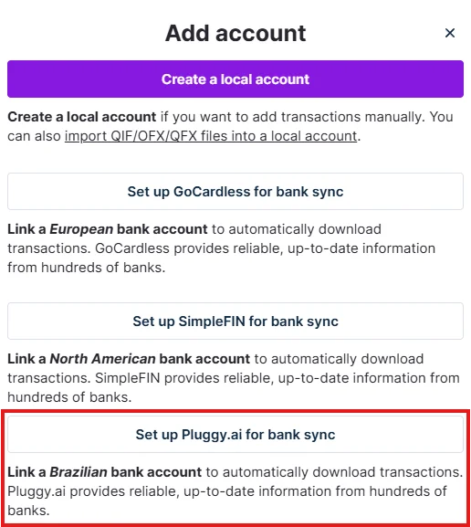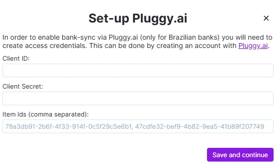 Select "Set-up Pluggy for bank-sync."